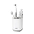 These toothbrush caddies have different sections for organising a variety of oral care items such as manual or electric toothbrushes and toothpaste tubes.