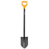 - All-purpose digging spade with pointed and sharpened cutting edge.