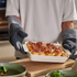 This clever design separates out the index fingers of each hand, offering much more dexterity and control when handling hot cookware. The palms get the high heat-resistant treatment with silicone grips and there's padded cotton cuffs for premium comfort. This set of two features both right and left-handed gloves.